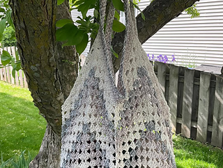 Design begins with a classic granny square motif, then cinches in the center of each side to stop increasing and create the tote shape.