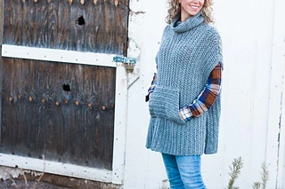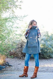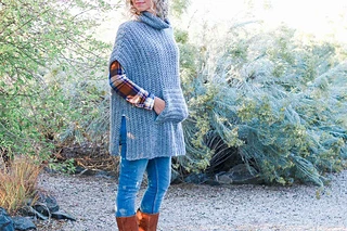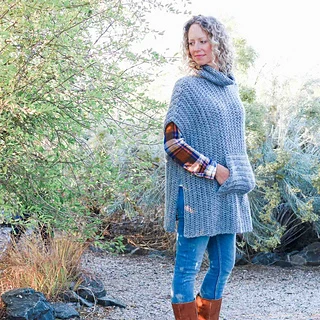 If you love the look of ponchos, but don’t care for the bulk, this pattern is for you! Worked sideways in entirely half double crochet, this crochet poncho is created using a simple increase and decrease repeat. The addition of the cowl neck and front pocket make for a super cozy piece that you can layer all fall and winter long.