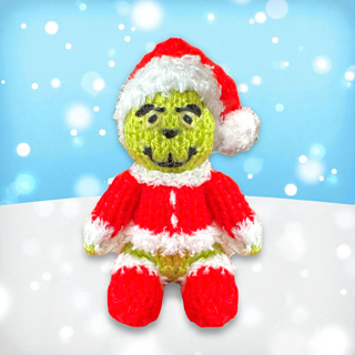 This lovely Grinch inspired knitting pattern is for a chocolate cover. I have put a Ferrero Rocher chocolate inside but any similar sweet or sweets could be used.