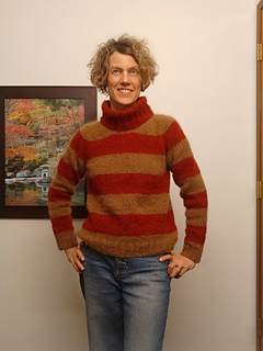 Tässä yksinkertaisen rennossa, ylhäältä alas neulottavassa puserossa on näyttävä katseenvangitsija: reippaat palkkiraidat. Pörröisestä langasta neulottuna puserosta tulee ihanan kevyt, ja se sopii säähän kuin säähän vuodenajasta toiseen.