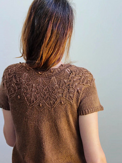 Haiku tee is perfect for the summer, it is a fresh and versatile, embellished with a delicate lace stitch in the yoke. We used a pure silk yarn that enhances the lace stitches and gives the garment an elegant and refined look.