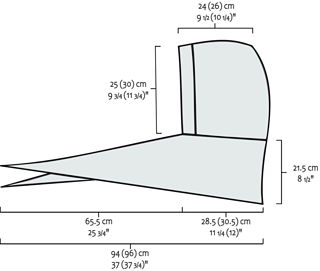GAUGE 15 sts/22 rows = 10 cm {4”} in St st, blocked.