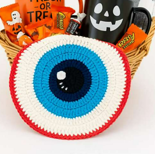 Instead of sticking to the usual green or hazel, this time I went with a bold blue iris for a chilly, haunting stare that’s perfect for October. Whether you use it as a dishcloth, a pot holder, or a quirky table centerpiece, this eyeball is guaranteed to get guests talking.