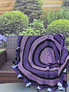 Add a touch of spooky elegance to your home décor with the Halloween Crochet Flower Bouquet Blanket Pattern! Designed with bold purples, blacks, and whites, this textured blanket blends Halloween spirit with floral charm. The pattern begins at the center and grows outward in circular rounds before transitioning into a square shape, finished off with a stunning flower bouquet border.