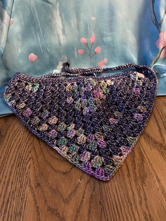 One tester described this bandanna as a super easy beginner pattern. It has written instructions, using American crochet terms, and there’s also a chart of the first three rows.