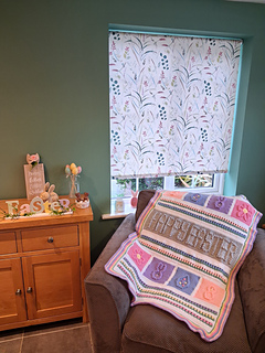 The finished blanket measures approximately 124cm x 76cm (including the border).