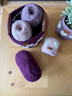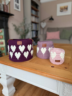 Designed using worsted weight yarn held double (or a single strand of chunky), creating a sturdy, structured set of Valentine’s nesting baskets ideal for storage, gifting, and home décor.