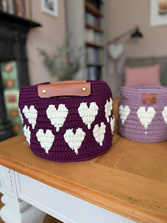 This pattern includes three nesting basket sizes, detailed written instructions, full mosaic charts, PLUS a supporting video tutorial showing you how to create beautifully shaped hearts using the overlay mosaic technique.