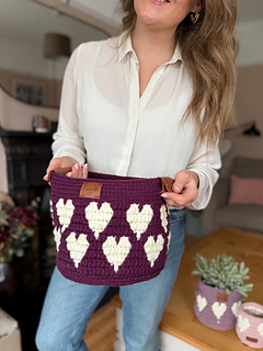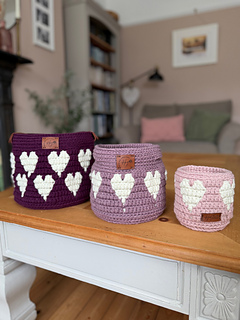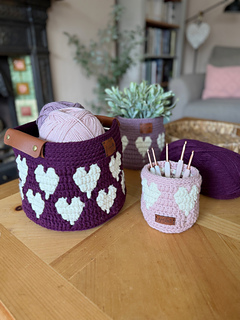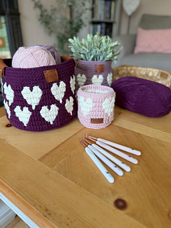 Play with soft neutrals, gentle tonal shades, or warm, cosy colours — the Happy Hearts baskets look beautiful in every palette. Whether used as a crochet plant pot cover, storage basket, gift basket, or decorative piece, this heart basket crochet pattern adds texture, warmth, and a little handmade love to your home.