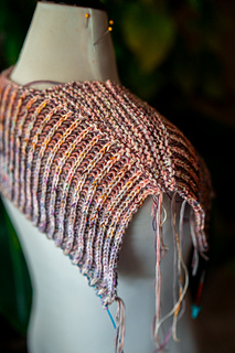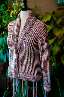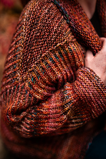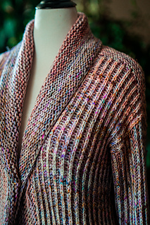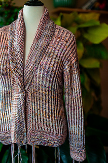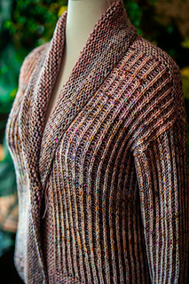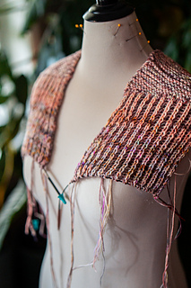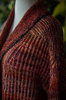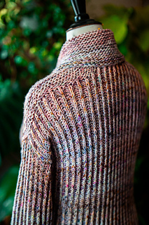 - Wide marled garter shawl collar picked up and shaped with short rows at the end