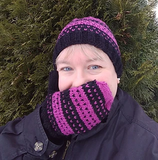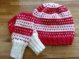 I’ve always thought that simple single-stitch colorwork patterns look like little tiny hearts from a distance. This design works up quickly as a warm gift for your sweetheart – at any time of the year!