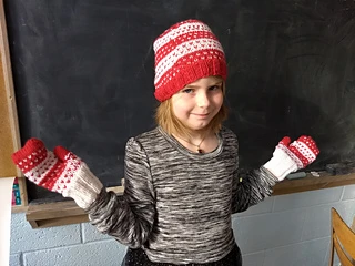 These mittens look like fair isle/stranded knitting, but they use slip stitches to create the same effect. The benefit is that you are working only one color per round! That means it’s great for a beginning knitter.