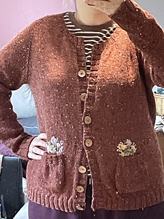 Hedgerow is worked seamlessly from the top down. The sleeves are worked in the round from the underarm to the cuff, and the pockets are worked flat and seamed in place at the end.
