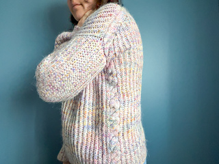 This sweater is recommended to be worn with 10-15 cm of ease at the bust.