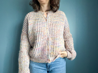 Hélénie is a drop-shoulder cardigan worked top-down, back and forth. It has an unusual construction and is primarily worked in Fisherman rib. The back and ribbing of the cardigan are adorned with a delicate cable.