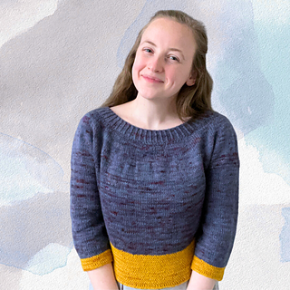 This top-down yoke pullover is worked in the round, starting with twisted ribbing, featuring stockinette for most of the knit, and ending with a squishy herringbone band.