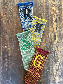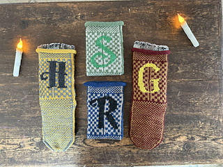 There are individual colorwork charts for each house as well as a grey chart to make it easy to knit these any color combination that you choose!