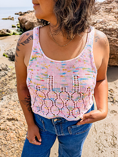 The Hoi-An Top has a lace element at the bottom that evokes the beauty of this city and its lanterns. It’s a fitted top that can be made cropped or as long as desired. It’s worked seamlessly top-down and the pattern includes written instructions as well as charts for the lace portion.