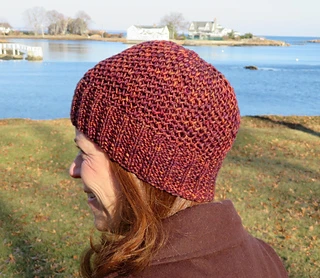 The slip-stitch pattern is really easy to do, but not as easy to “read” for mistakes as a simpler knit-purl texture. This hat is worked in the round.