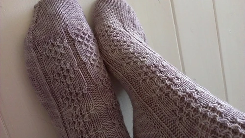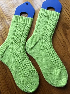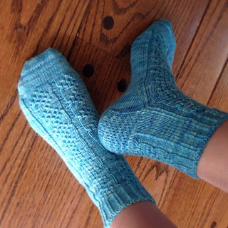 This pattern is offered in two sizes: M (8” circumference) and L (9” circumference) and also as either a cuff-down version or a toe-up version. Please ensure you select the version you require at the pattern download stage.