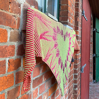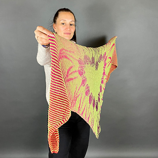 Dieses große Tuch ist in der Illusions-Technik gestrickt und zeigt einen Tulpenstrauß in Form eines Herzens. Das Tuch hat eine Größe von ca. 200cm x 78cm.