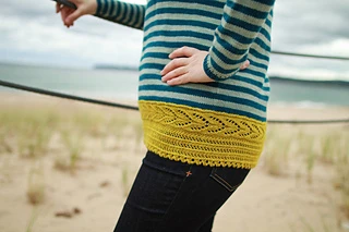 Indian Summer puts a bit of a girly spin on your favorite slouchy sweatshirt! The deep lace hem and the full 5” / 12 cm of positive ease are the perfect mash up of comfort and sophistication. Indian Summer would be fantastic in Traveler Sport or any of the Plucky fingering weights.