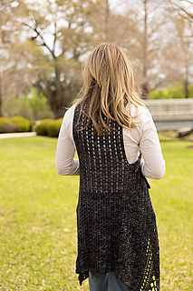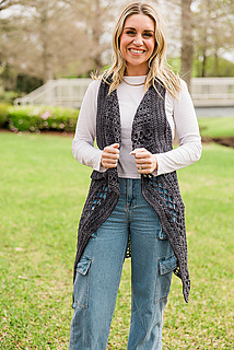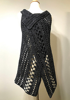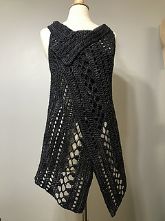 dress form is average size shown with size Large Vest in Stunning String Yarn