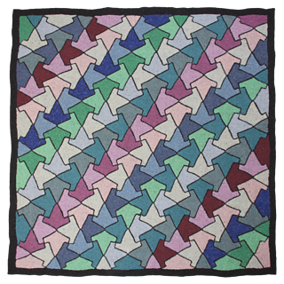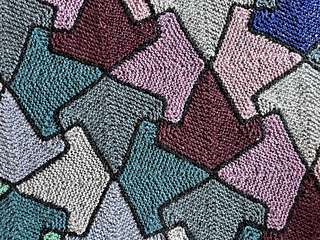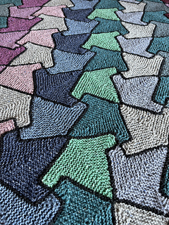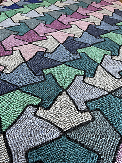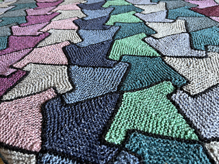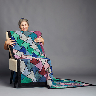 The pieces of this blanket fit together like a puzzle! Blocks are worked individually, sewn together into strips, then the strips are sewn together. The Border stitches are generated by picking up and knitting stitches on the edge of the blanket.