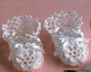 Lacy booties with Irish rose on toe, ruffle cuff with ribbon tie.