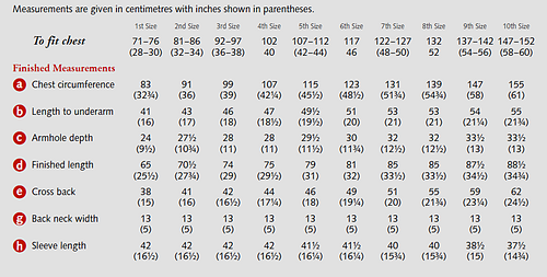 The pattern includes 10 sizes to fit from 28-60inch (71-152cm) chest.