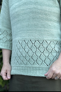 Jamieson can be further customised to achieve the perfect fit - The body features a dropped sleeve that means the shoulder line is positioned beyond the shoulder joint; try on the garment at this point, to establish what finished sleeve length you require. Need the body shorter or longer? Length on the body can easily be removed or added during the stocking stitch section worked above the Open Work. Proportions can also be altered by working fewer repeats of the Open Work section.