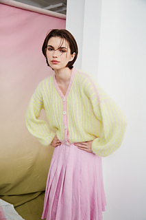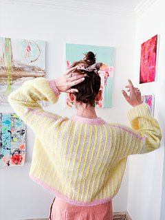 Yarn C: Super kid mohair, Corralito Yarns, 475 mt per 50 grams. Acid colorway. 1, 1, 1 (1, 2, 2) 2, 2, 2 skeins.