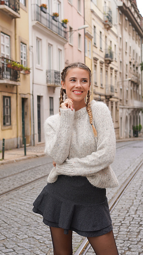 Dank der schräg verlaufenden Raglanlinien, die direkt mit den Zunahmen mitgestrickt werden, entsteht ein harmonisches, gleichmäßiges Maschenbild. Der Körper fällt locker, ohne aufzutragen und die Ärmel verjüngen sich sanft nach unten – für eine moderne, schlanke Silhouette.