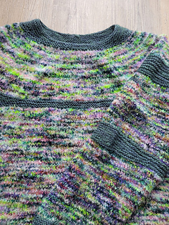 The rest of the piece is kept simple in stockinette with a different textured yarn and color, letting the uneven stripes shine like the shifting bands of Jupiter.