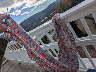 This shawl was actually the inspiration for the Juste Millieu Cowl.