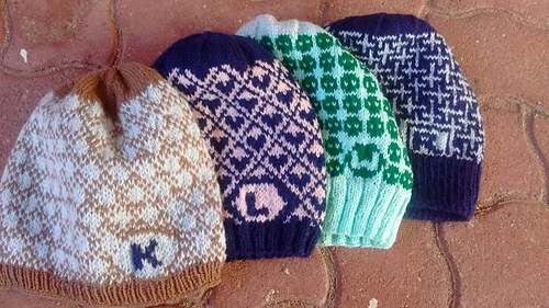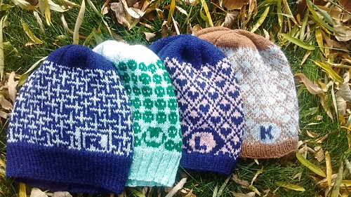 This pattern comes with instructions for 2 sizes and has charts for 5 different designs; hearts, check, crosses, buttons, and alien heads. There are also 2 brim options in 2 lengths. There is pretty much a pattern for everyone on your list and putting their initial on it will give it a nice personalized touch. You can work the design over the whole hat or add the section for inserting an initial from the alphabet charts.