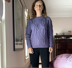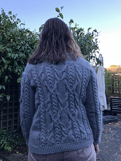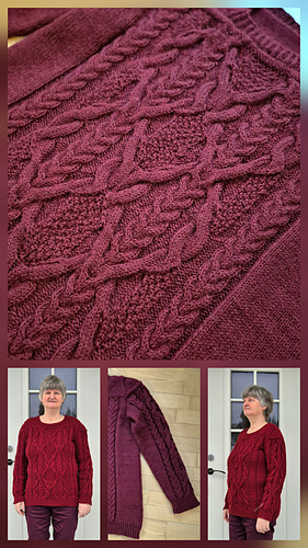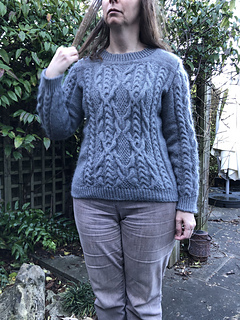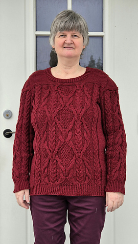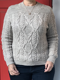 Notes: The sweater is worked top-down, from one shoulder, then flat to end of armhole, before joining and working the body in the round to final bind off. The sleeves are worked top down with short rows for the cap and then worked in the round to final bind off. Both body and sleeves have a fake seam stitch. The neck band is worked at the end. All twisted rib bands end in a tubular bind off.