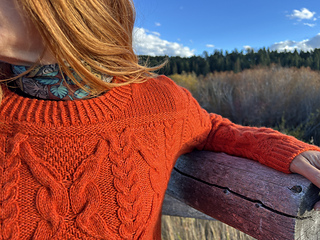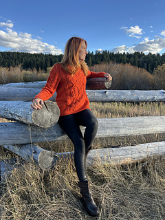 Sample is knitted in Orange 668; 4 (5, 5, 6, 6) (7, 7, 8, 9) balls; 1170 (1305, 1440, 1575, 1710) (1845, 2047, 2249, 2451) m/1280 (1427, 1575, 1722, 1870) (2018, 2239, 2460, 2680) yds.