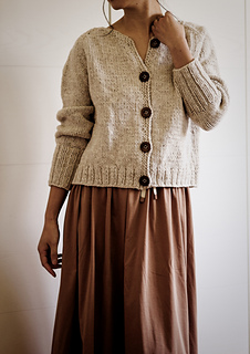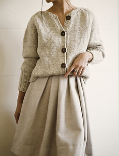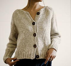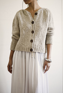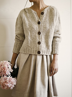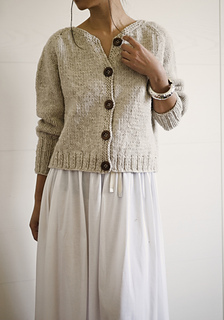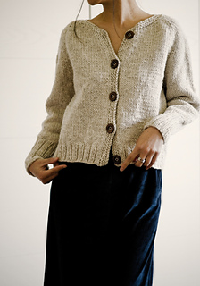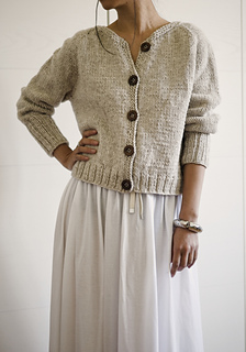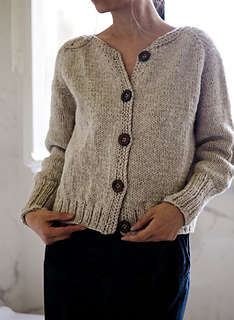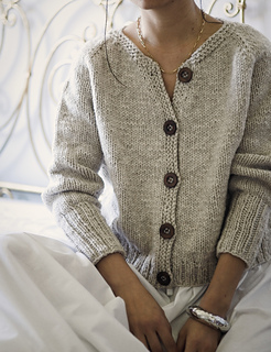 Kaia Cardigan is a raglan cardigan with minimal finishing, worked in Aran weight yarn to give it body and a cozy look.