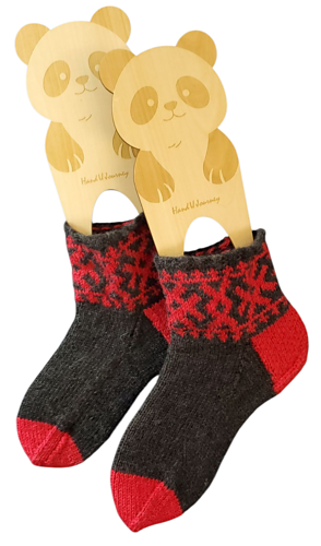 “These slippers are knitted using a hand-dyed, nylon-free sock yarn,” says Outi Kater. “This is extremely strong due to its high content of mohair, which comes from the flock of Angora goats on the Whistlebare family farm
