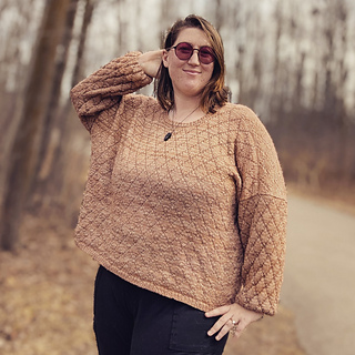 The sample uses a chainette, plant fibre yarn. If using a denser yarn, opt for something closer to worsted weight. Swatching is highly recommended if using an alternative.