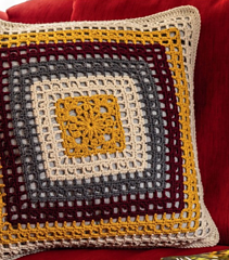 Pillow with yellow gold center, gray, wine mid-section, and cream. Two designs.