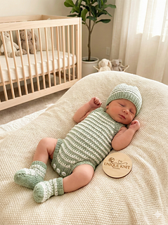 This pattern provides the instructions to make all 3 pieces and is suitable for a 0-3 month-old baby or a 16 - 22” Reborn doll, the size depends on the needles and yarn used.