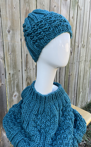 This super bulky weight hat uses 2 simple texture patterns to create a fun, warm hat that will fit most adults.