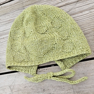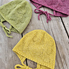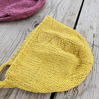 You begin at the bottom, knitting back and forth. Later, the work is joined, and the bonnet is finished with decreases at the top. The neckline is finished with an I-cord edge.