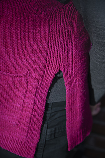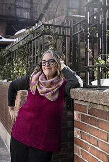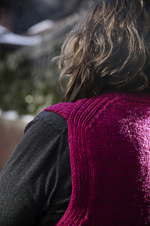 This is a Bottom Up pullover vest knit flat, seamed then joined at the neck and ribbing is knit in the round. All decreases are worked as described in the Stitch glossary. You may use any decrease you like if this one does not suit you. Fit is meant to be relaxed. The sample bust measurement is 44 in. The model has a 38 in bust.