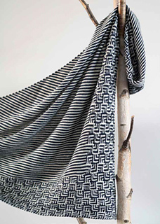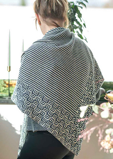 Shawl knitted sideways featuring garter stitch and slip stitch.