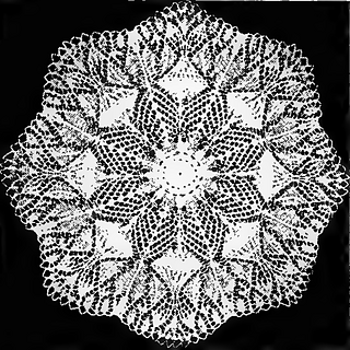 This lovely, lacy doily measures about 14 inches in diameter when made with number 30 crochet cotton.