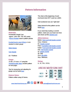 This free crochet sweater pattern for L to XXXL dogs is perfect for our long-legged furry friends. One thing I noticed while designing the extra small, small, and medium dog sweater pattern is that with larger dogs it can be difficult to get their long legs into conventionally styled dog sweaters.