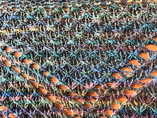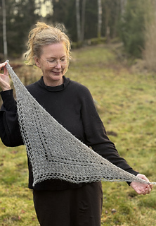 Rauma Alpaca Silk, 65% alpaca, 25 % silk and 10 % merino, 219 y (200m)/25 g, or similar super fluffy brushed alpaca, cashmere or mohair lace yarn. For scarf size as shown you need 109 y (100m). One ball (25g) makes 2 small scarves or 1 larger.